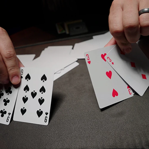 Retiras dos cartas para ti y entregas el resto al espectador.